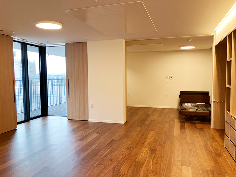 住戸は単身世帯向けの1R・1LDKが中心で、専有面積は30㎡前後から40㎡台。各住戸はシンプルな設計でありながら、輻射パネル式空調や床暖房が設えられ、季節に左右されにくい室内環境が整えられている。電動ベッドも備えられ、一定の配慮が見られる。
